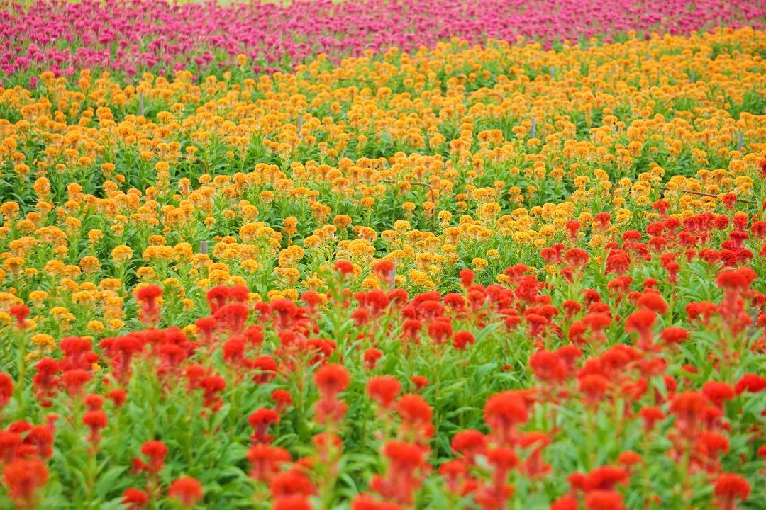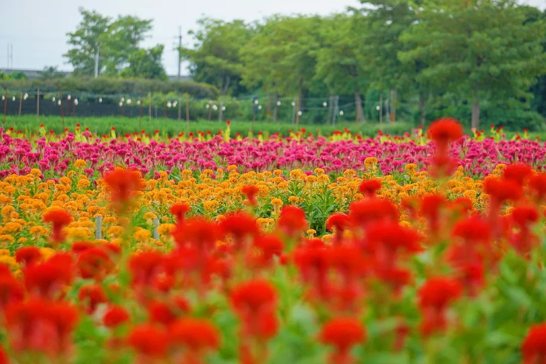彰化實屬花卉之都!彰化北斗這處的彩色雞冠花正熱烈盛開中,3色花海花色形成夢幻景色,從不同角度都可以欣賞到漸層系的花海,隨手一拍都是美照,夢幻又燦爛的景色可別錯過!